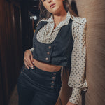 A menswear inspired staple updated with a modern feminine low neckline. This Sally double breasted fully lined waistcoat offers sophistication and class to your wardrobe and pairs beautifully with your favourite blouse or turtleneck and creates a finished look when added to our sailor bells.