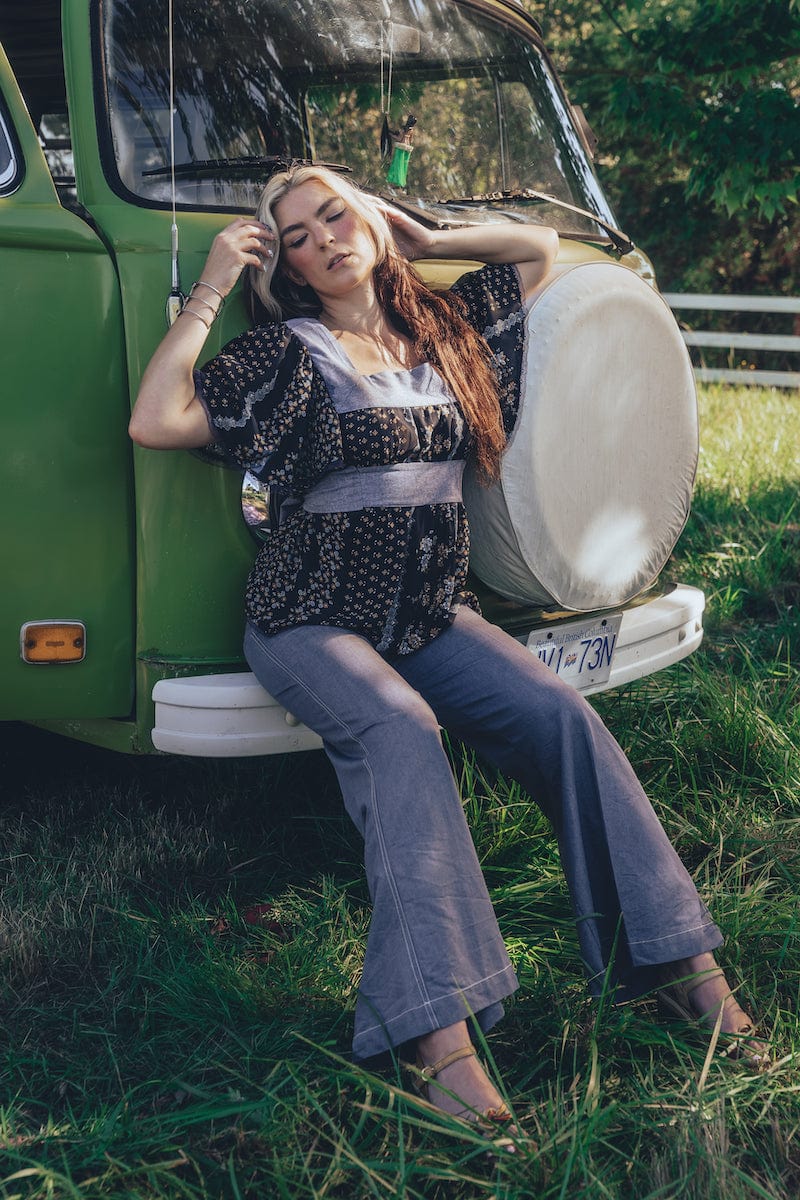 Super high 11” rise super groovy fit with a wide bell pant leg 33" inseam