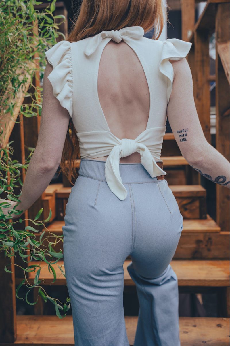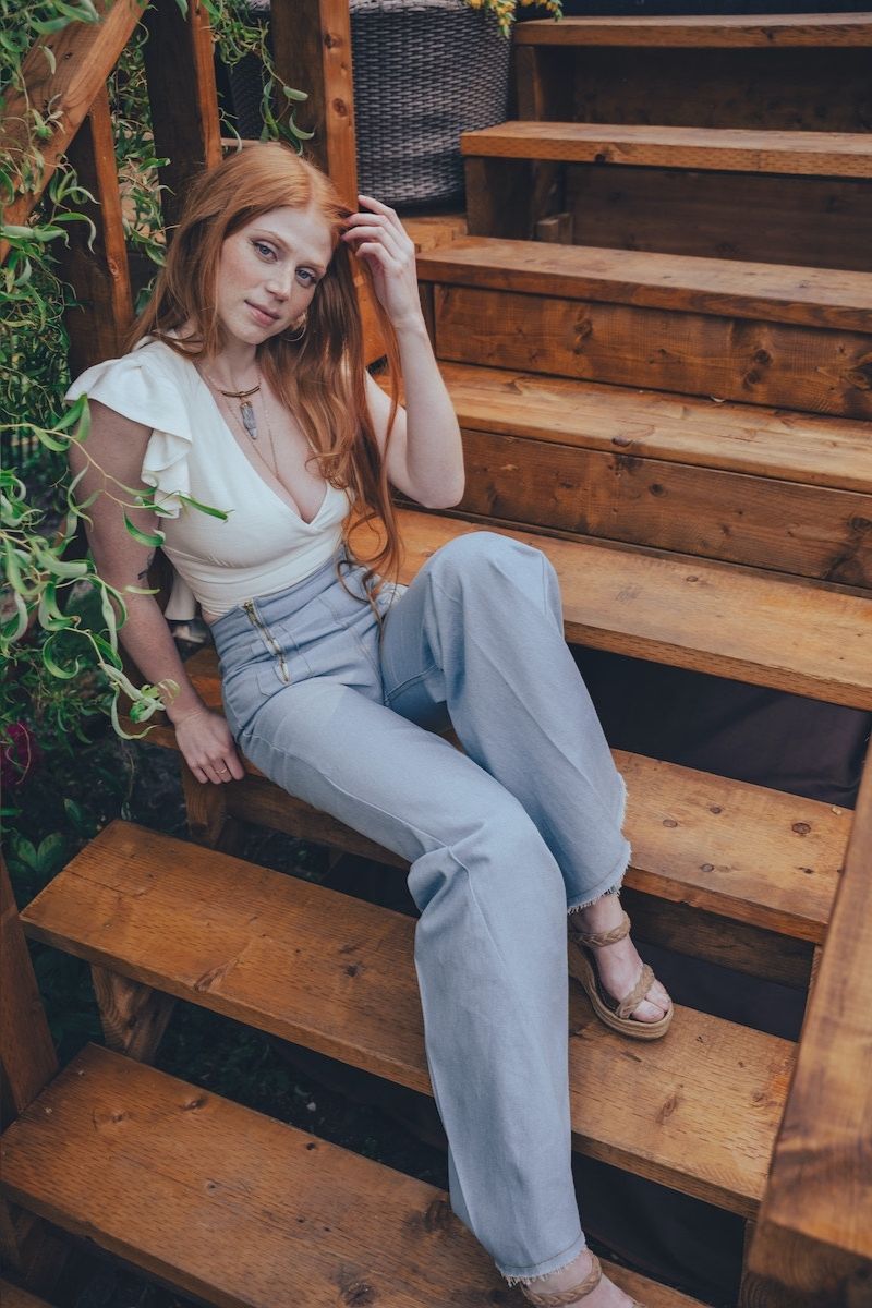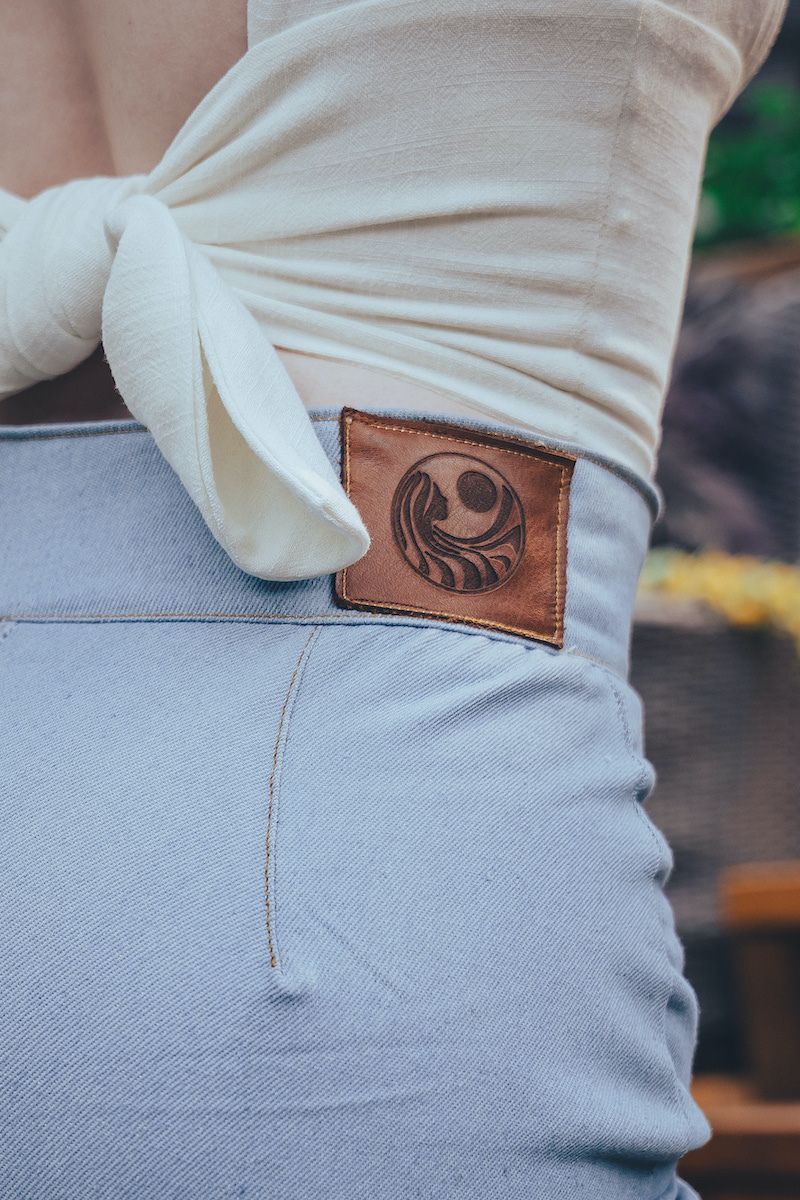 Meet the Billie Bell - a wide- leg, baby blue denim dream, dripping with 70s soul. Designed with bold brass zippers on the front hips and a sky high waist, these flares were made for dance floors, day dreams, and divine struts down memory lane.