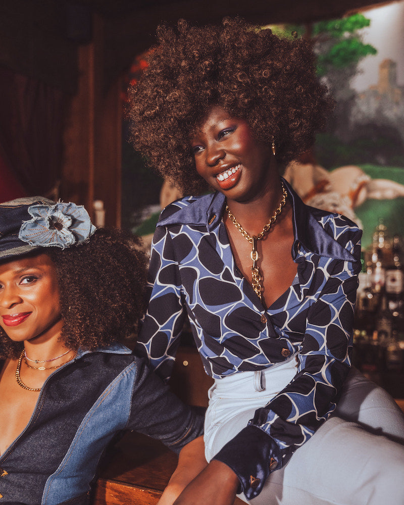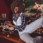 Slide into the cosmic funk shirt and own the room with pure retro swagger. Long tulip sleeves and oversize satin collar and satin cuffs catch every eye, with a fitted button up front and curved hem, sculpt your silhouette, with unapologetic flare. This is 70s funk, dialed up to eleven - sexy, edgy, and dripping with disco era attitude.