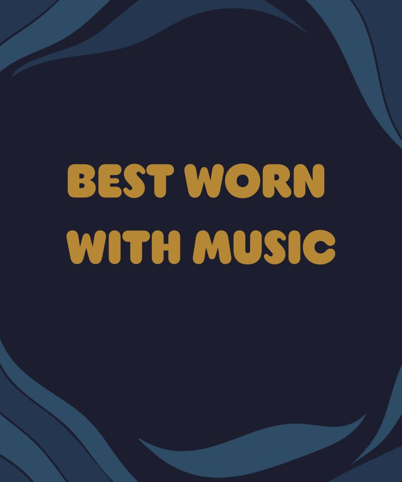 Person wearing headphones and a light-colored  1970s style outfit in a cozy retro room with warm lighting.