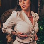 Our Farrah cropped corduroy jacket is a retro dream, with long puff tulip sleeves, satin contrast cuffs waistband and oversized collar for an iconic '70's glam. Pair it with our Joan high waisted bells for a power suit moment thats pure vintage soul with a modern edge.