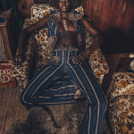 These low-rise, bell-bottom jeans offer a flattering fit and a timeless 70s style, perfect for pairing with a t-shirt, waistcoat, or jacket.